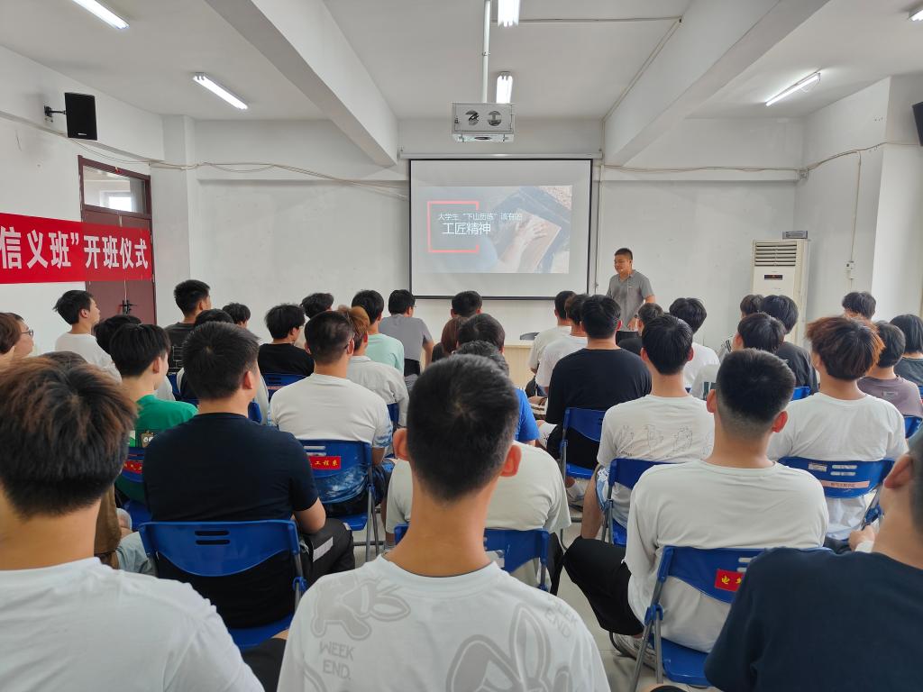辛建国用朴实、生动的语言,从“工匠精神的内涵”“工匠精神的意义”“个人如何践行工匠精神”三个方面,以信义公司玻璃制造设施设备运行及养护日常管理的精细化、精准化成果为切入点,为大家阐释了干一行、爱一行、专一行、精一行,务实肯干、坚持不懈、精雕细琢的敬业精神。辛建国精选自己入职信义10年来在工作岗位上的生动详实事迹与工作案例和同学们进一步分享了如何践行工匠精神。他说工匠精神就是踏实做好技术工作,将手中的任务做到极致;衷心热爱一份工作,守初心,践使命;保持不断地学习,不断挑战自己,站在行业的最前端。他号召在座的同学们要专注、坚持、精益求精地做好一件事,要坚定信念,做知行合一的实践者。