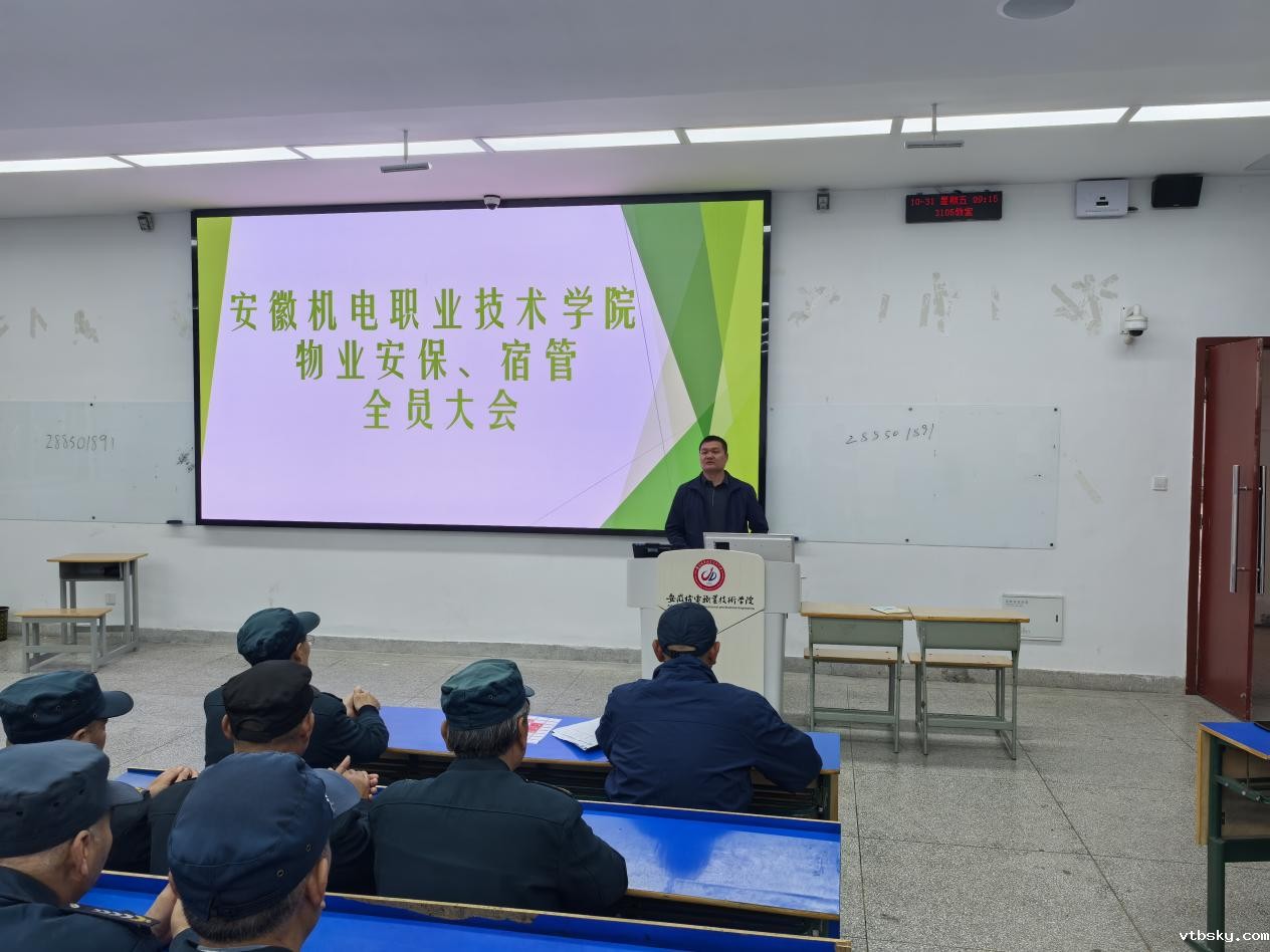 为进一步提升学校物业安保和宿管人员工作能力和服务水平,10月31日上午,校园安全管理处在三号教学楼3105教室组织召开物业安保、宿管全员大会。校园安全管理处全体职工、物业项目驻点负责人,安保、宿管全体员工,消防维保、安防运维服务单位驻校负责人,新一届全体治安信息队全体成员参加会议。会议由校园安全管理处周伟老师主持。