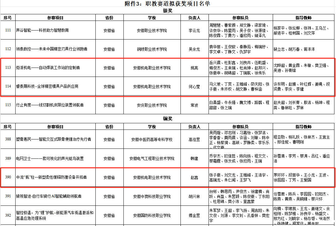 近期,2024年中国国际大学生创新大赛全国总决赛成绩揭晓,我校在本次大赛中荣获2项国赛银奖及1项国赛铜奖,实现了国奖级别的全面覆盖,在安徽省高职院校中,我校的获奖数量位居前列。