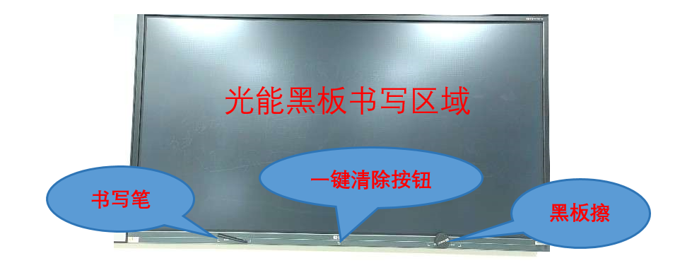 1、书写:需要进行板书时,使用光能黑板下方的书写笔在光能黑板上进行书写,书写完成后请将书写笔归还原处。