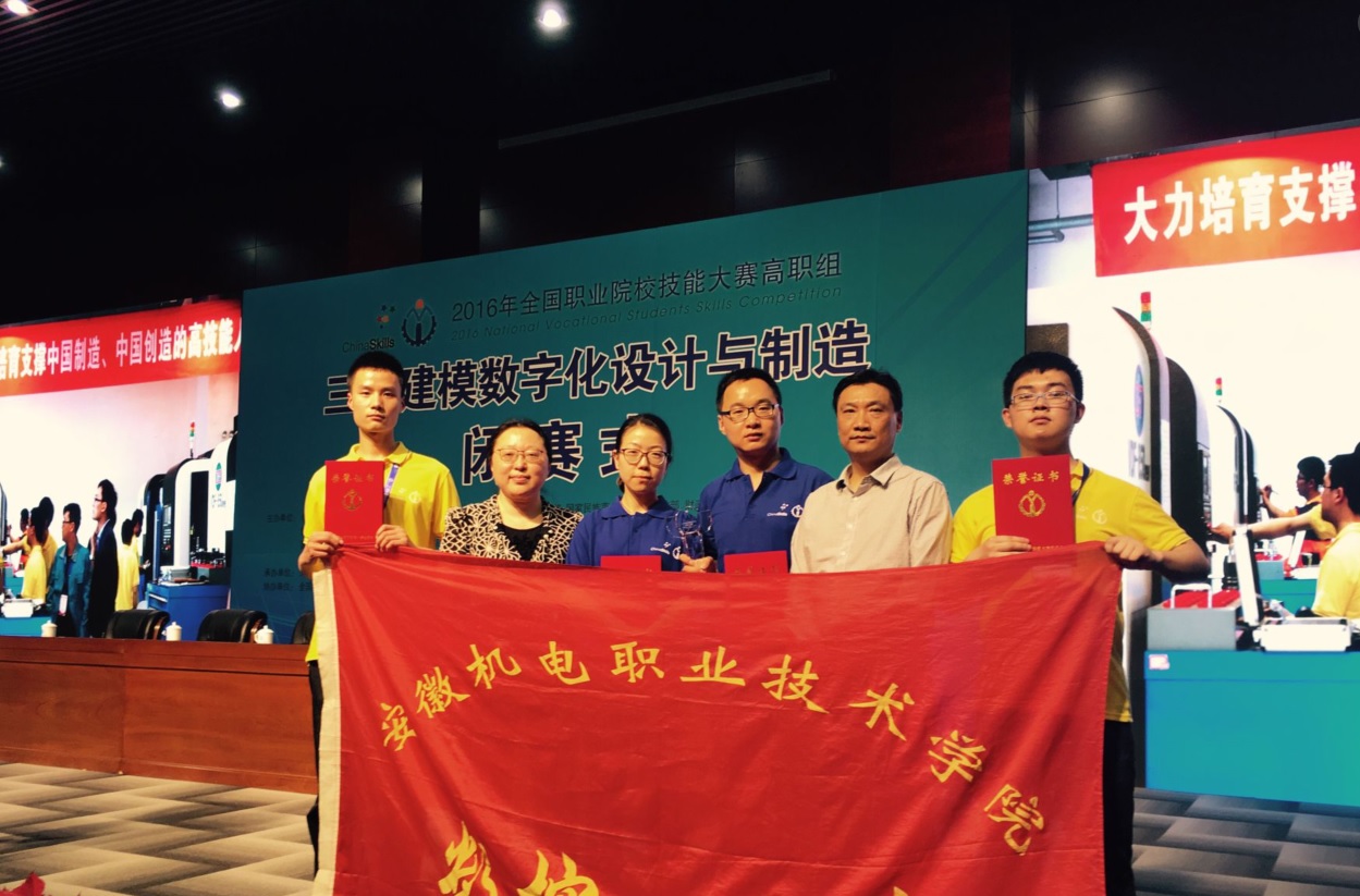 2016年全国职业院校技能大赛高职组“三维建模数字化设计与制造”赛项于2016年5月9日-10日在天津机电职业技术学院举行。我院高凯迪、殷潇2名同学组成的比赛团队(指导团队教师:李庆/方慧敏),经过5个多小时两个赛段的奋力拼搏,在异常激烈的竞争中,荣获“三维建模数字化设计与制造”赛项全国一等奖,这是我省代表队在该赛项首次获得金牌。