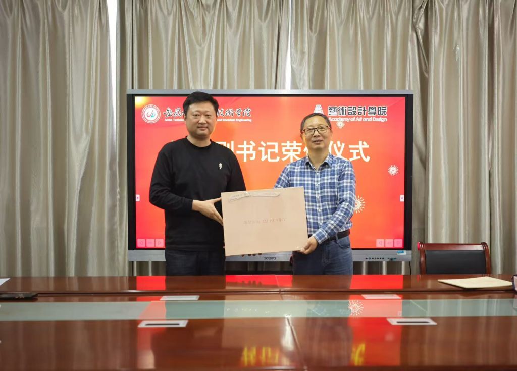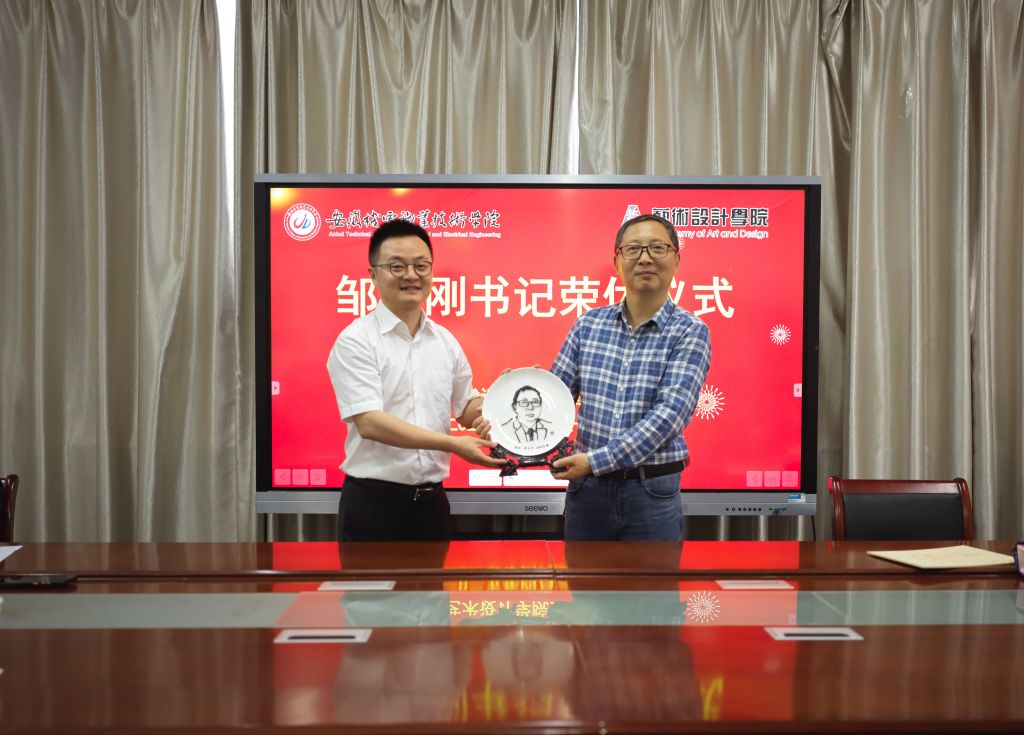 在赠送纪念品环节,孙建友献上象征祝福的亲手定制鲜花,张阳赠送寓意“声传薪火”的手持话筒,周正宇送上学校专属定制礼物,陈旺院长则代表学院呈递以芜湖铁画工艺特制的邹书记人像纪念品。每一份礼物都承载着对邹书记的敬意与不舍。
